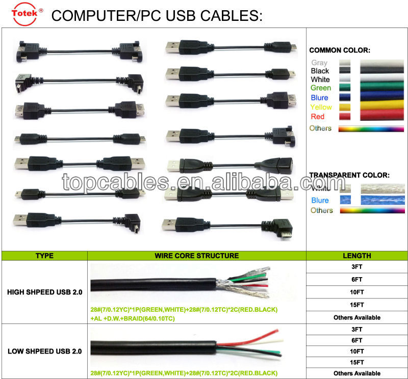 angled usb cables with 2.0 Version 2824AWG micro to usb AM